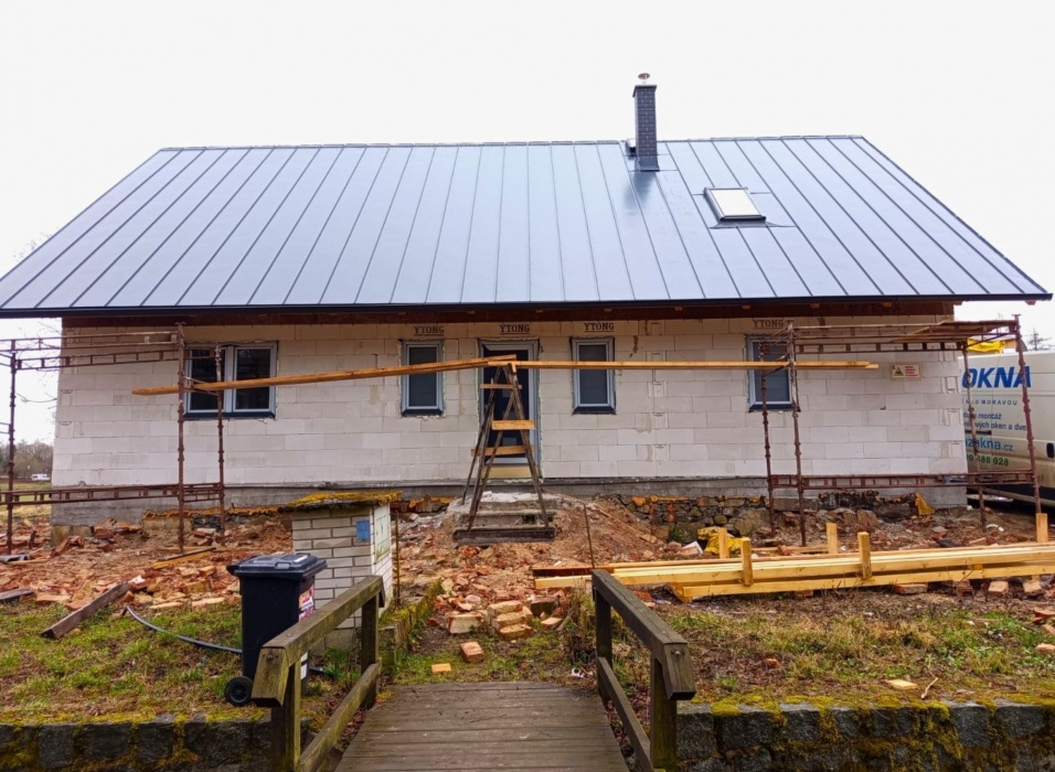 Pro novostavbu rodinného domu v Novém Oldřichově jsme dodali a osadili plastová okna a dveře ze systému REHAU SYNEGO MD a HS portál REHAU GENEO s izolačními trojskly IZOS Triple v kombinaci anthrazitgrau z exteriéru a bílé v interiéru.