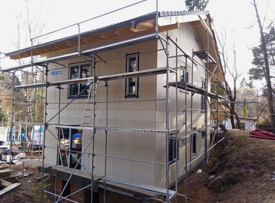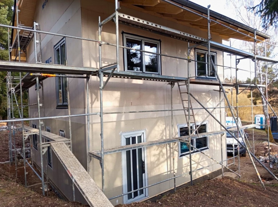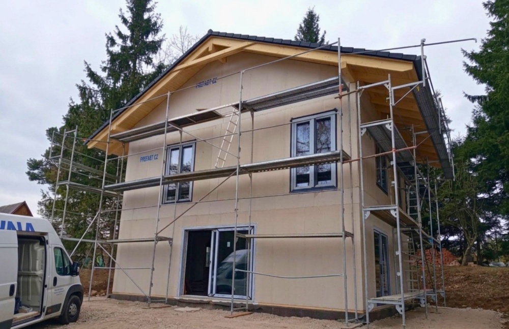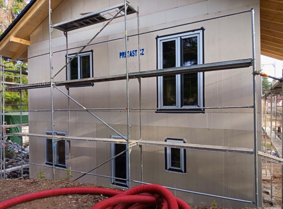 Okna a dveře byly dodány v profilovém systému REHAU SYNEGO MD, který je osvědčenou volbou pro novostavby i moderní rodinné domy s důrazem na tepelnou izolaci, těsnost a dlouhou životnost.