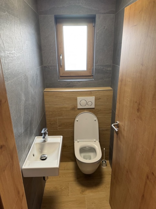 Všechny prvky byly dodány v novém dekoru Turner Oak malt, který napodobuje strukturu pravého dřeva nejen na pohled, ale i na dotek. Světlý matný odstín dodává interiéru přírodní a elegantní vzhled, který dokonale doplňuje moderní architekturu domu.