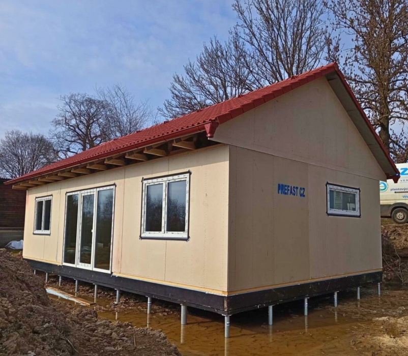 Ve spolupráci s firmou Prefast jsme pro tuto dřevostavbu dodali a osadili okenní a dveřní prvky ze systému REHAU SYNEGO MD v čistém bílém provedení.